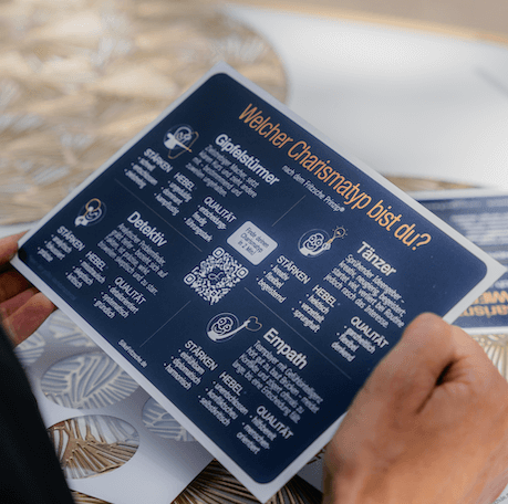 Du investierst 2 Minuten, entdeckst deinen echten Charisma-Typ und hörst endlich auf, gegen deine eigene Natur zu arbeiten.